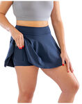 - Classic women’s high-waist, flared skirt with integral short for tennis and all court sports. With 2 ball pockets, this hi-stretch recycled fabric offers brilliant drape, flare and sustainability